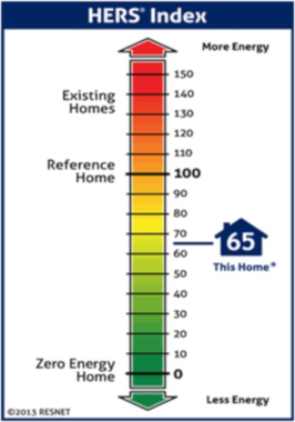 | 130 | This is the typical resale home score. This house will be at least 30% less energy efficient than it should be. Therefore, the smart way to buy a home is to determine its HERS® Index score before you decide to buy and take advantage of the Energy Efficient Mortgage. |