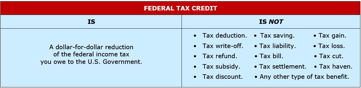 Some people are confused about what a Federal Tax Credit really is and is not. Hopefully, the information below will be helpful in preventing any further confusion.