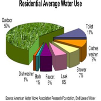 The Residential Average Water Use Chart shows how and where exactly the water is being used.