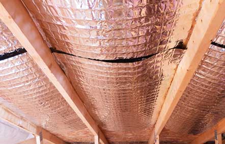 Radiant Barrier is a reflective insulation system that offers a permanent way to reduce energy costs. Radiant barrier insulation systems reflect Radiant Heat Energy instead of trying to absorb it. A pure aluminumized film radiant barrier reflective insulation is unaffected by humidity and will continue to perform at a consistent level no matter how humid it may be. A radiant barrier insulation system is a layer of metalized film facing an airspace and is installed in the envelope of a building.