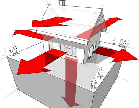 Air Leaks represent another serious problem inside a house which causes Energy Loss. For this reason, it is essential to identify all possible leaks and to ensure that these leaks are eliminated or minimized by using various materials including insulation. This will subsequently help homeowners to save a lot of money on electrical bills.